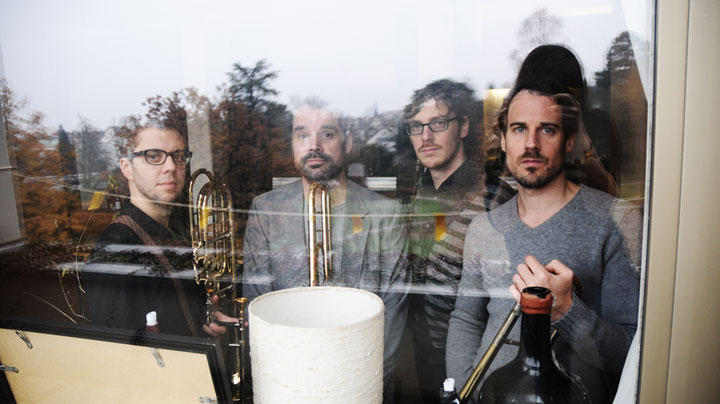 Nun drängt sich bei einem Visionär wie Wogram eine Konstellation wie das Posaunenquartett mit seinem sakral antikem Charme keineswegs auf. Doch gerade das leicht angestaubte Image des Posaunenquartetts reizte ihn, sich diesem Thema aus einem ganz anderen Blickwinkel zu nähern. Dass eine Band mit vier Posaunisten nicht so sehr auf ihn selbst als Frontsolisten fixiert ist, mag dabei nur einer von mehreren Aspekten sein. Der Mangelsdorff-Preisträger hatte zwar seinerseits schon lange die Idee, ein solches Ensemble auf die Beine zu stellen, aber Jan Schreiner kam ihm zuvor. „Es braucht eben jemanden, der das in die Hand nimmt“, so Wogram, „Jan wollte anfangs Stücke für uns in Auftrag geben, aber Bernhard Bamert und ich wollten dem Quartett lieber unsere eigene Handschrift geben. Es gibt ja schon einige Posaunenquartette, deren künstlerisches Level aber oft recht niedrig ist. Meistens geht es nur darum zu zeigen, was sie auf der Posaune alles spielen können. Einen weiterführenden künstlerischen Anspruch findet eher man selten. Eine Ausnahme war vor vielen Jahren das Projekt Slide Ride mit vier Individualisten. Bei uns ist der Individualismus vielleicht nicht ganz so ausgeprägt, uns ging es mehr um einen echten Ensemblesound.“